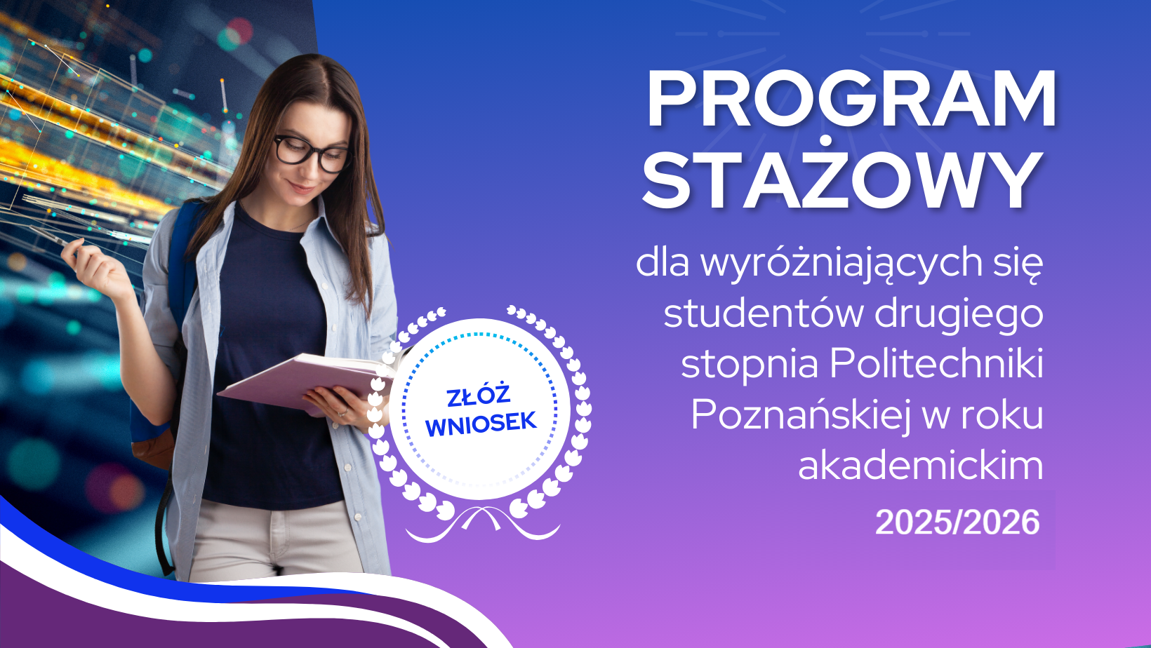 Program stażowy ma na celu przygotowanie wyróżniających się studentów II stopnia studiów do pracy w charakterze nauczyciela akademickiego przez rozwijanie umiejętności dydaktycznych, badawczych oraz organizacyjnych w ramach rozwoju kadry Politechniki Poznańskiej. W ramach programu stażowego przewiduje się zatrudnienie dwóch studentów-stażystów na wydziale, w ramach umowy cywilnoprawnej wynagradzanej ryczałtowo. Dziekan wydziału, po konsultacjach z dyrektorami instytutów, biorąc pod uwagę zapotrzebowanie kadrowei plany rozwoju jednostki, ustala obszar badawczy, w zakresie którego istnieje potrzeba zwiększenia potencjału badawczo-dydaktycznego oraz realizowany będzie staż na danym wydziale.