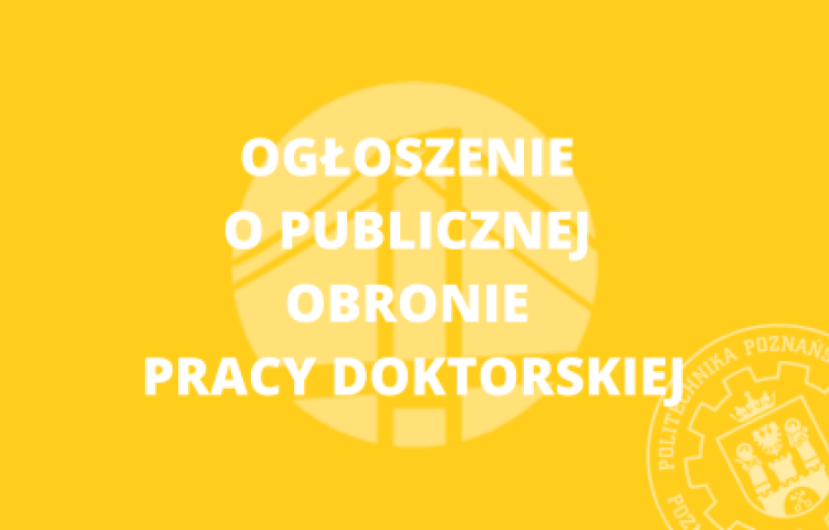 w budynku A-1 Politechniki Poznańskiej, przy ul. Piotrowo 3 w Poznaniu, w sali 219 odbędzie się publiczna obrona rozprawy doktorskiej