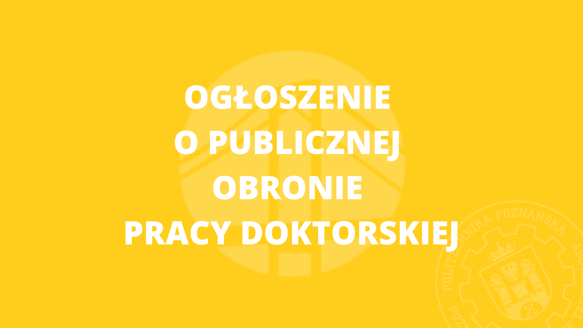 w budynku A-1 Politechniki Poznańskiej, przy ul. Piotrowo 3 w Poznaniu, w sali 219 odbędzie się publiczna obrona rozprawy doktorskiej