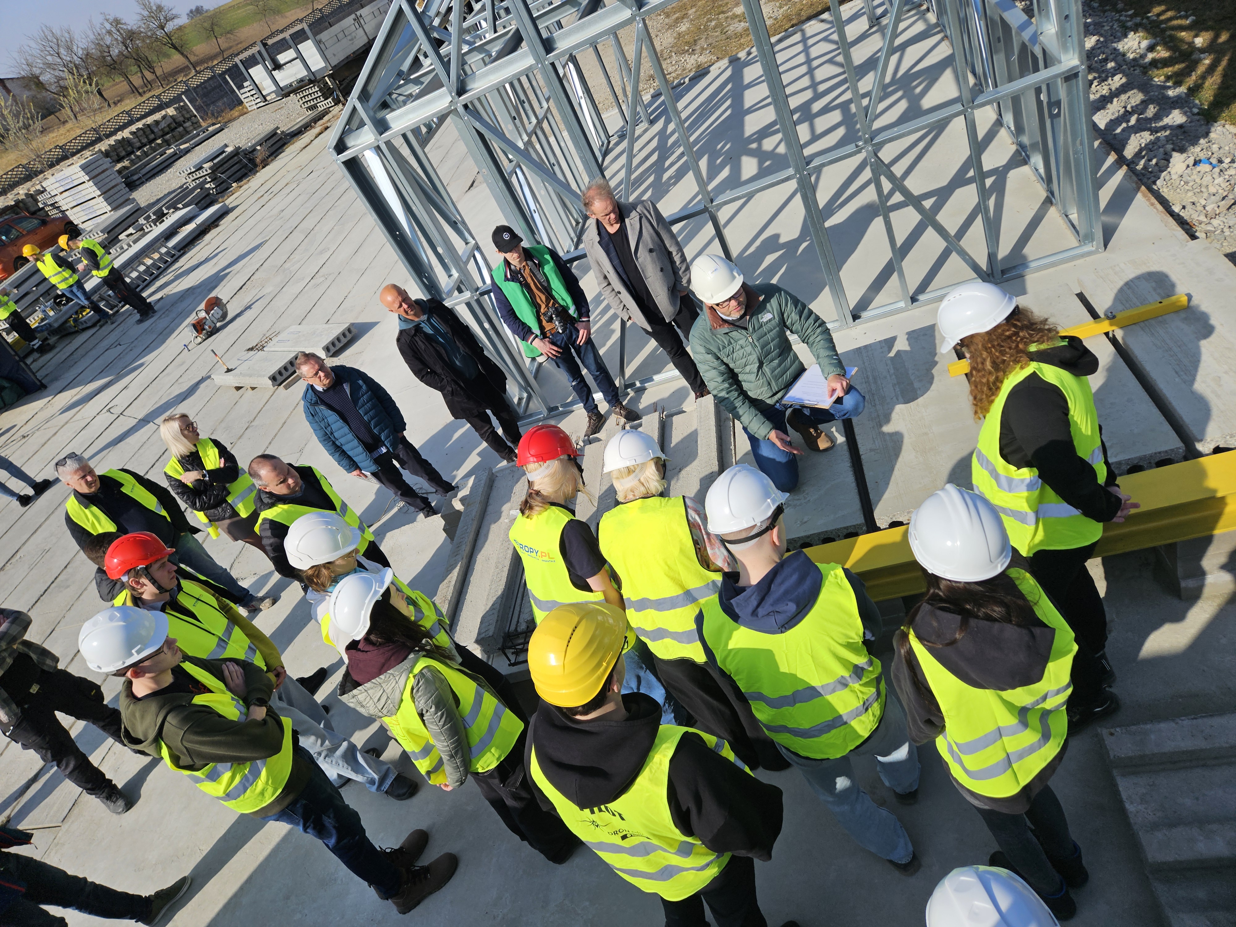Podczas spotkania mieliśmy okazję zobaczyć jak wygląda montaż w praktyce oraz wysłuchać ciekawych porad dotyczących zarówno szczegółów konstrukcyjnych jak i zasad bezpiecznej pracy na budowie.