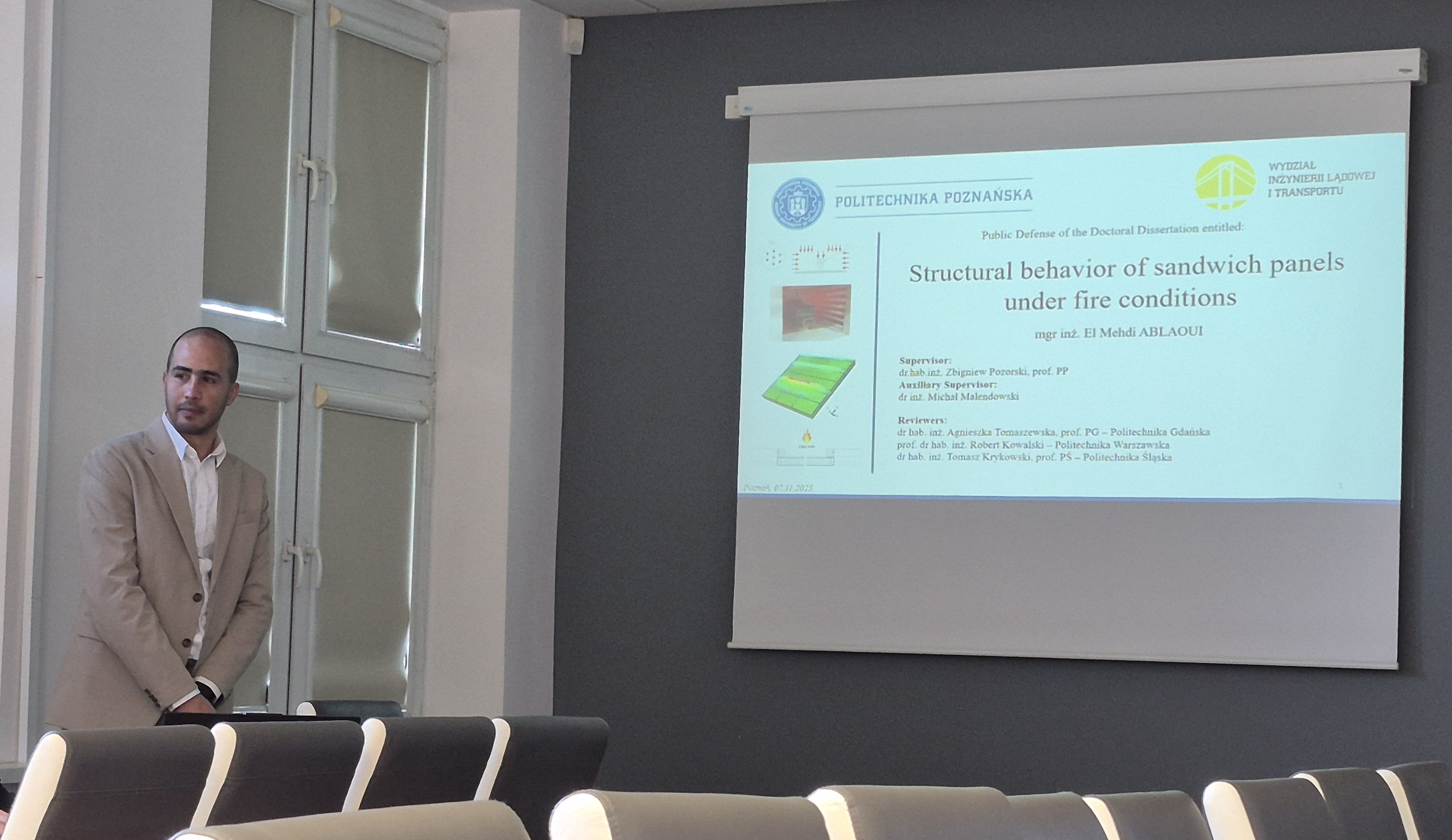 W dniu 7 listopada 2025 roku o godz. 9.30 w budynku A-2 Politechniki Poznańskiej, przy ul. Piotrowo 5 w Poznaniu w sali 139 odbyła się publiczna obrona rozprawy doktorskiej mgr inż. El Mehdi ABLAOUI na temat: