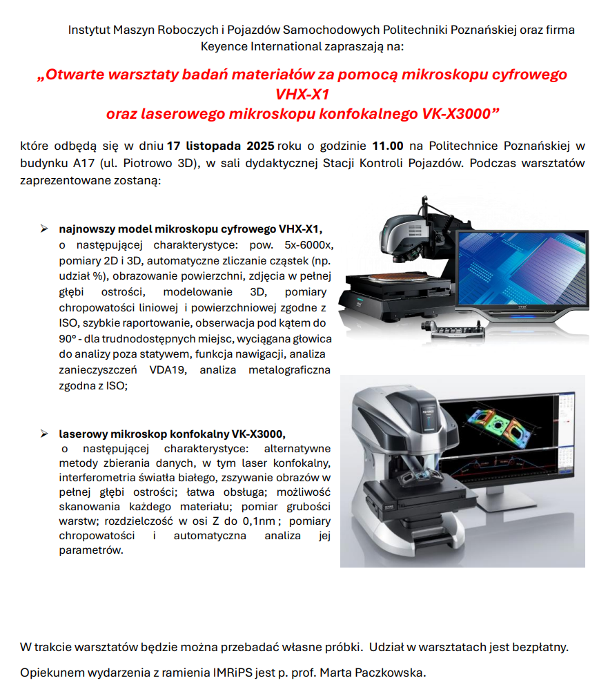 Witaj na stronie internetowej Instytutu Maszyn Roboczych i Pojazdów Samochodowych Politechniki Poznańskiej